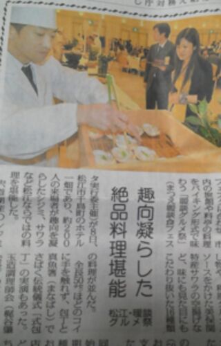 本日の山陰中央新報には、暖談食フェスタが沢山掲載されてましたね。まだまだ続きますから、いいPRになっています。 今朝、山陰中央新報を読んでいたら、昨日の「暖談グルメ祭」が記事になっていた。右の画像がそうですけど、まぁ、これは毎年記事になるので…