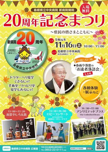 明日16日(土)は、出雲市の島根県立中央病院において「島根県立中央病院新病院開院20周年記念まつり」が開催されます。 今日はその準備で17時から元請け様と共に中央病院に入りました。僕は斐川の出身なので、県立中央病院には子供の頃からお世話になってい…