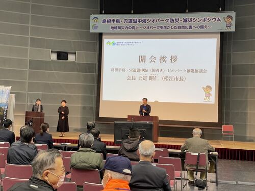 「島根半島・宍道湖中海ジオパーク防災・減災シンポジウム」はしっかりと、いい運営ができました。 今朝は、8時半過ぎには会場入りして機材のセッティングと配線工事などから始める。準備はスムーズに進み、客入れからスタートも問題なかったです。 また、最…