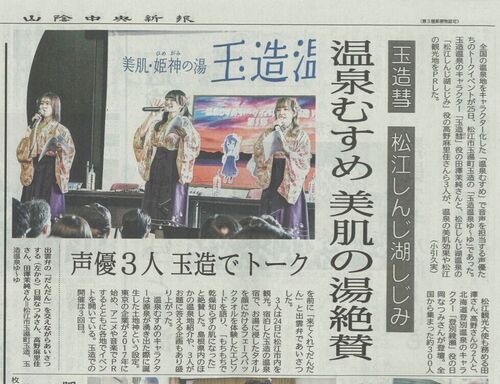 昨日のもう一つの現場が新聞に掲載されてました。 こちらは松江市内のイベントで、弊社所有の75インチ超大型モニターの貸出でした。 狭いホールで舞台とプレゼンがある場合には、プロジェクターよりも超大型モニターの方が断然いいです。室内照明をフルにし…